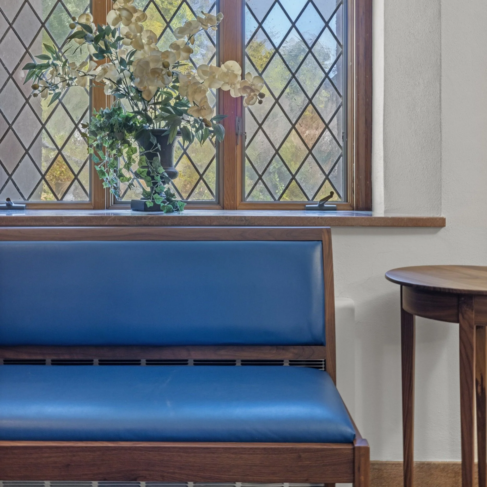 The light remodel and accessibility initiative for Mount Auburn Cemetery’s columbarium at Story Chapel included introducing ADA signage, new lighting, paint, furniture, and custom millwork. This was a very collaborative effort between Mount Auburn Cemetery and the many vendors that worked with us to renovate this welcoming and tranquil space.